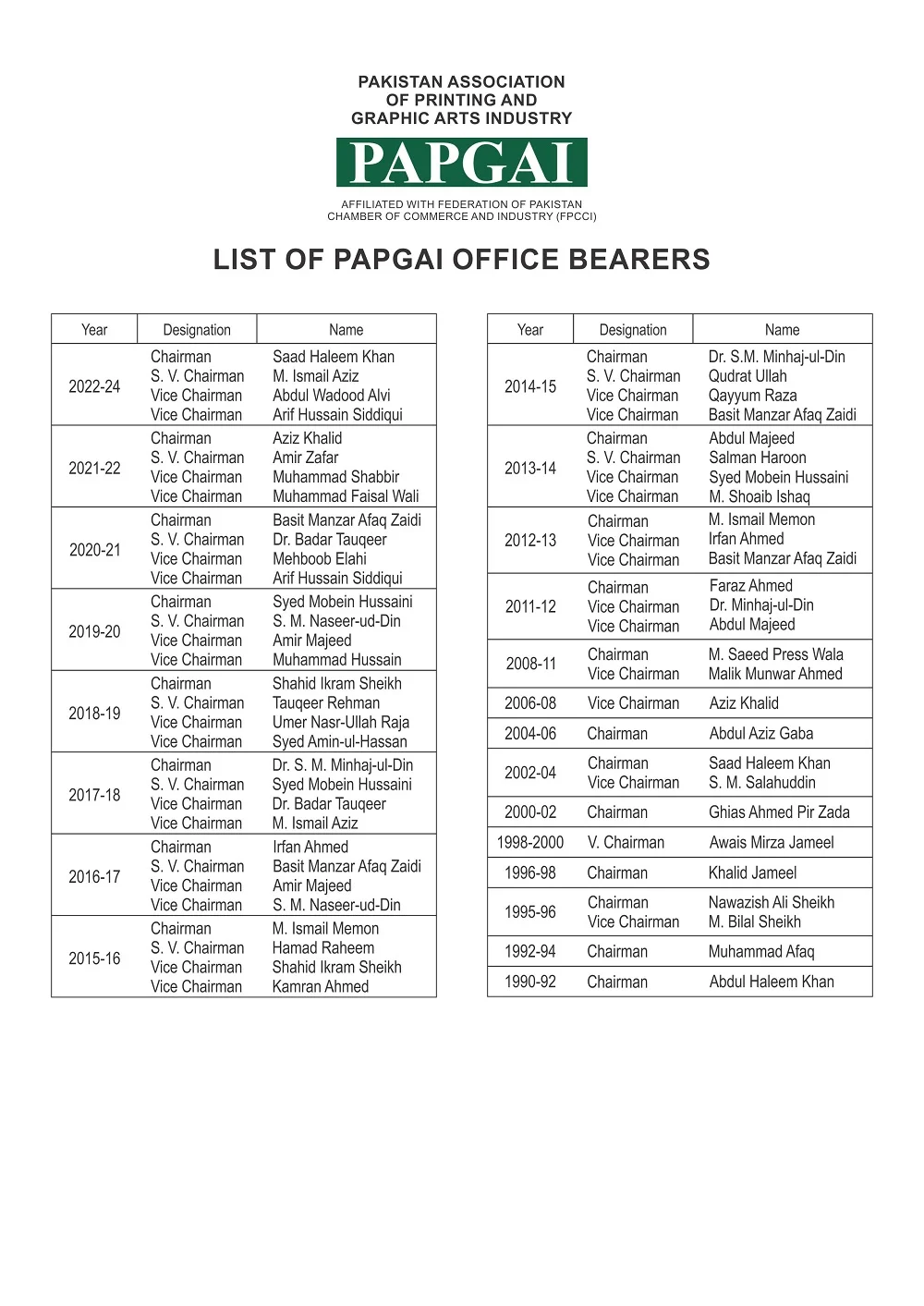 Past Office Bearers